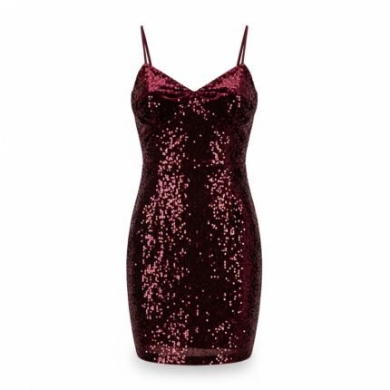 Burgundy Velvet Sequin Mini Dress | Xylvra Embellished Party Cocktail Dress