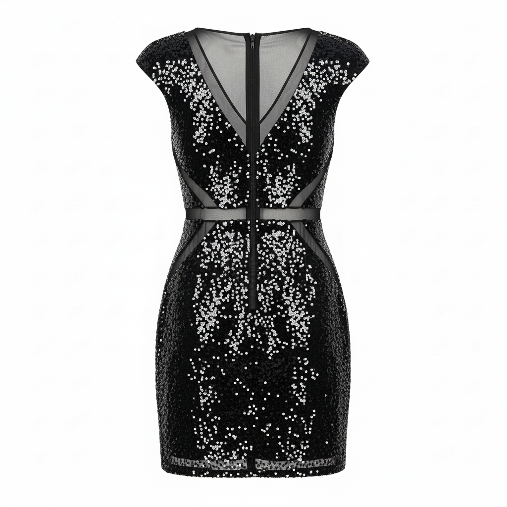 Xylvra Sequin Mini Dress with Mesh Detail | Glamorous Party Cocktail Dress