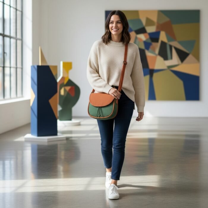 Introduction: Tired of handbags that sacrifice style for durability? End your search. Discover our Forest Green & Burnt Orange Saddle Bag – the definitive solution, crafted for your sophisticated, practical life, built to truly satisfy.