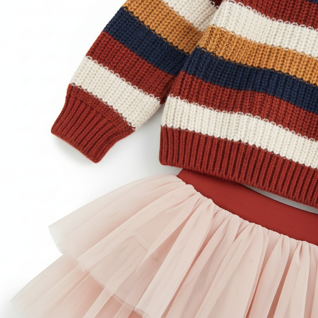 Girls Stripe Sweater & Tutu Skirt Set | Xylvra Kids Cozy Knit Outfit