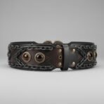 Adjustable Fit with Bronze Hardware: Functional yet decorative bronze rivets and eyelets allow for easy adjustment while reinforcing the belt’s durability and handcrafted detail.