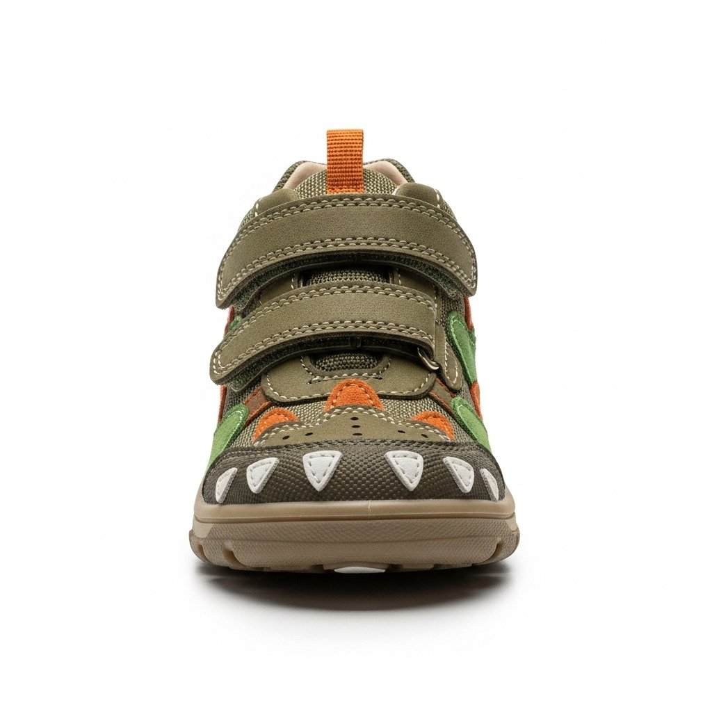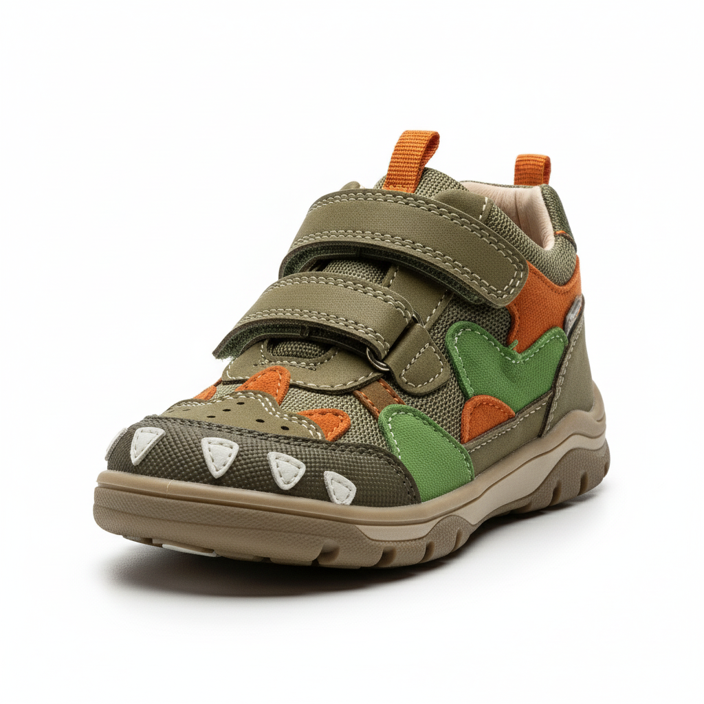 Crafted from a durable, soft-touch canvas upper featuring a vibrant dinosaur print, paired with a non-slip suede sole for safe indoor and light outdoor use.